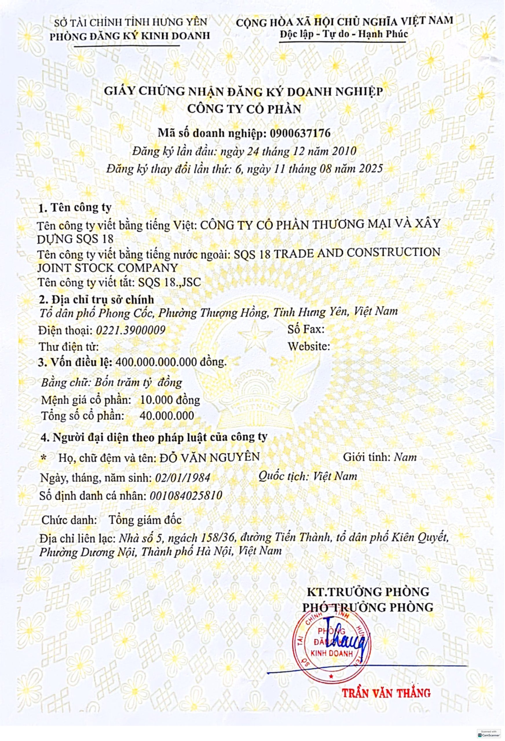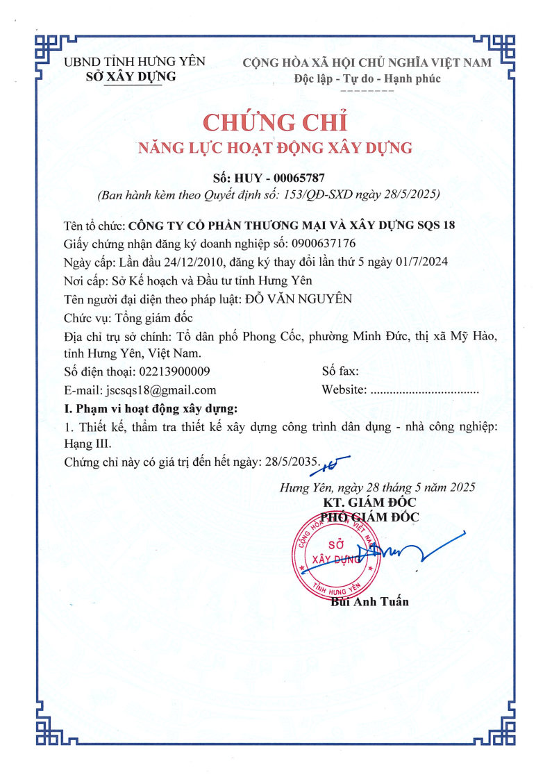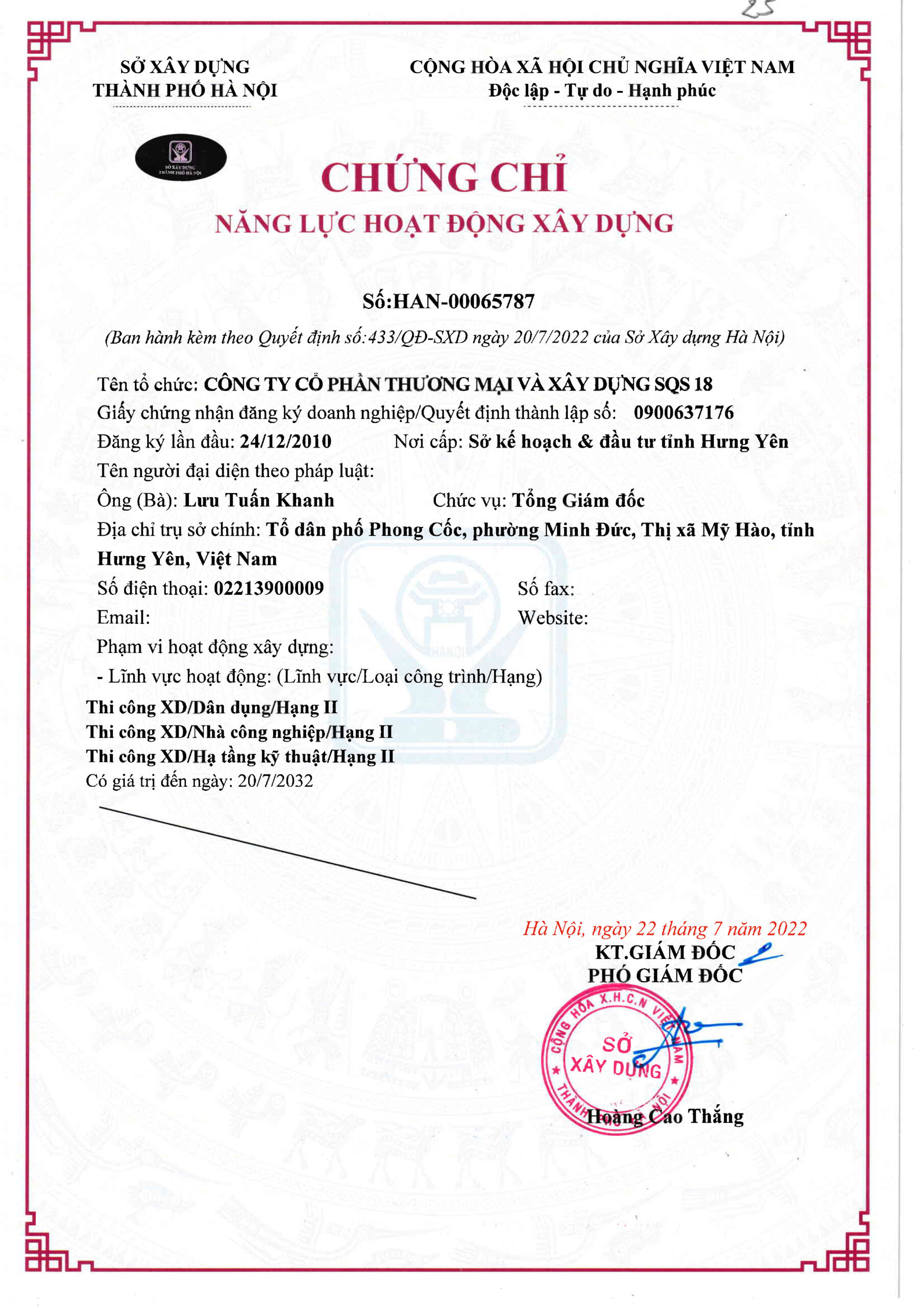 CÔNG TY CỔ PHẦN THƯƠNG MẠI VÀ XÂY DỰNG SQS 18
